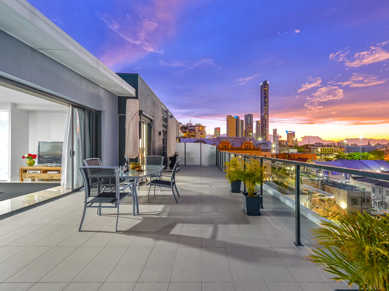 The unit itself is a cut above the rest, with its penthouse position and immaculate design layout creating the ideal space for owner-occupiers and investors alike. The master bedroom with stylish ensuite opens out onto the breezy balcony while the remaining oversized bedrooms boast light-filled openness and built-in storage that facilitates ultra-functional living. All bathrooms boast contemporary design and quality fixtures and fittings that embody the modern luxury of the entire unit. The expansive living area integrates seamlessly with the ultra-modern kitchen that is fully-equipped with state-of-the-art appliances and stone benchtops. This living/dining haven flows out onto the breathtaking balcony with panoramic views of the city and Teneriffe. Fully ducted air conditioning is featured throughout, as well as ceiling fans in each bedroom. The unit comes with 2 heavy duty outdoor umbrellas, perfect for entertaining on the extra-large balcony, and a wine fridge to top it all off. The breathtaking stylistic elements of this penthouse unit, matched with the functionality and location convenience creates the ultimate urban space. With 2 secure parking spaces, there is undeniable value in this offering.