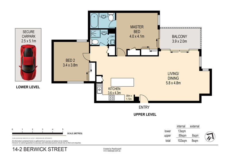 Internal: 102m2